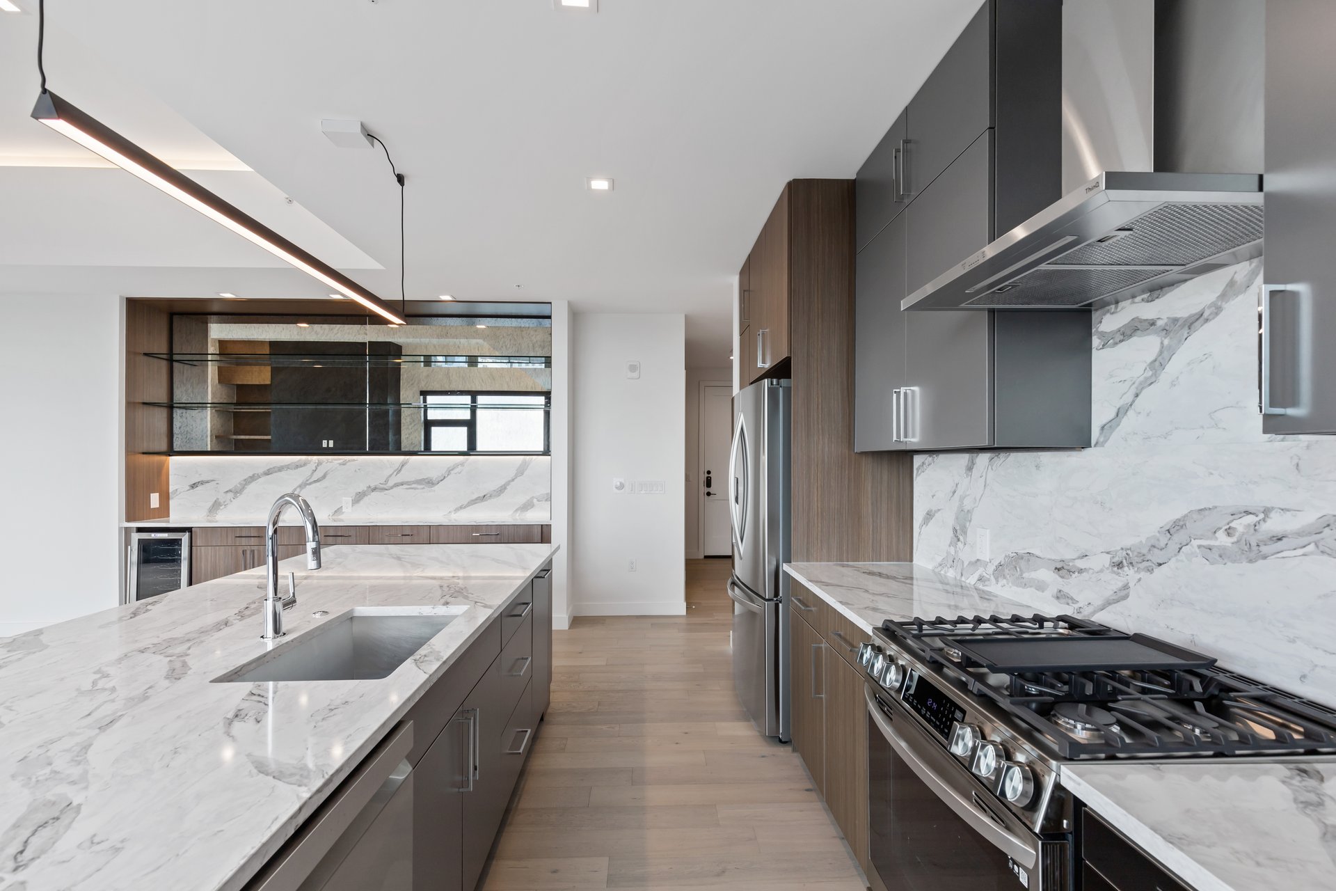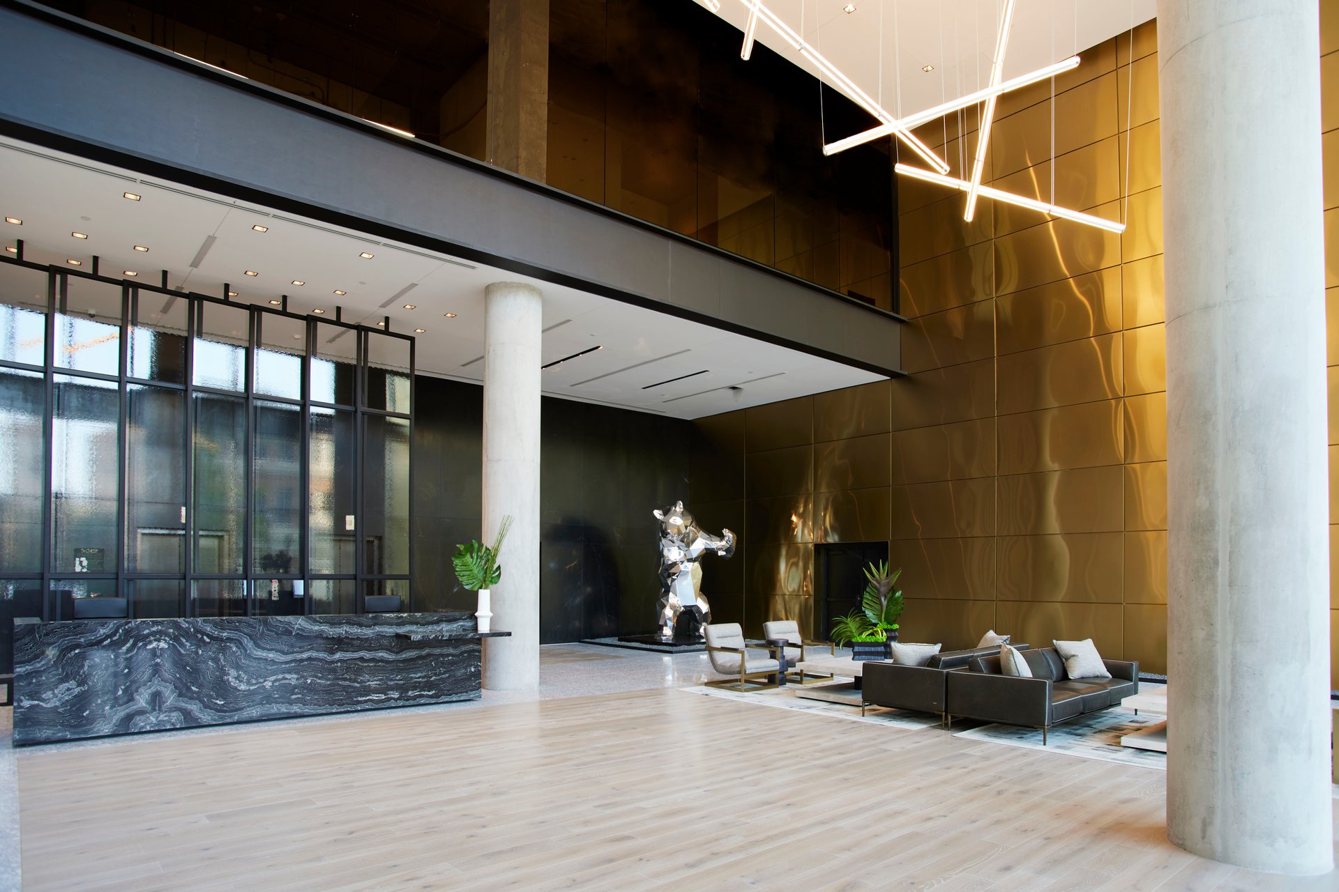 Three Hundred Pearl is a mixed-use residential and commercial tower in the East Quarter, a district at the intersection of Deep Ellum, the Farmers Market, Downtown, and the Central Business District. The project is part of a broader plan to restore and activate the surrounding urban fabric, restoring the existing 18 historic buildings of East Quarter. The tower includes 336 luxury multi-family units, 180,000 gross square feet of office space, 200,000 gross square feet of class AA commercial office space, and 25,000 gross square feet of ground-floor retail. The multi-family residential lobby, lounge, co-working space, and leasing offices are located in the fully restored, 100-year-old Meletio Electric building, preserving original character while serving new functions. Multi-family residences are comprised of a range of studio, one-bedroom, two-bedroom, and three-bedroom unit layouts, along with a collection of penthouses offering high-end finishes and expansive views. Interiors reflect a balance of modern design and the surrounding architectural context, with materials and finishes that feel clean, durable, and locally grounded. Amenity spaces are integrated throughout. The eighth floor features a rooftop zero-edge pool with views of the Dallas skyline. Residents have access to a boutique fitness center, private lounges, and curated common areas. The fitness center is housed in the restored Meletio Electric building, along with Leather Apron, which is a private social club with a private bar and lounge only available to the East Quarter district residents and office tenants. Ground-level dining and retail spaces directly engage with the sidewalk and surrounding neighborhood. Chef-driven restaurants and locally curated retail add to the energy of the street and connect the building to the broader East Quarter community. The architecture blends the industrial character of early twentieth-century Dallas with new construction that meets contemporary performance and sustainability standards. The double-height lobby features natural wood, stone, and exposed steel detailing carried over from the adjacent restored structures. Three Hundred Pearl is positioned across from Harwood Park, a new public space developed in partnership with local organizations. The park enhances the walkability and livability of the area, reinforcing the building’s role as both a residential address and an urban anchor. This project reflects a larger commitment to integrating new development within a historic district. It is not just a standalone tower but part of a growing, connected neighborhood that links Dallas’s past to its present through thoughtful design and execution. |
